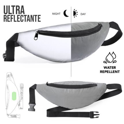 Canguro de alta calidad fabricada en resistente soft shell (neopreno), con tira reflectante. Compartimento principal con cierre de cremallera, soporte elástico para Tomatodo y bolsillo para llaves y otros pequeños objetos. Con cierre de hebilla y cinta ajustable, especialmente diseñada para actividades deportivas y de ocio. Reflectante