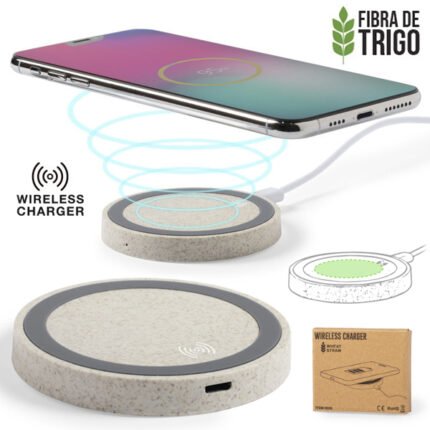 Cargador inalámbrico 5W de línea nature, con soporte integrado para smartphones y tablets. Carcasa en bambú procedente de cortes naturales. Incluye cable micro USB de 1m y es compatible con dispositivos equipados con tecnología de carga inalámbrica. Con amplia superficie de marcaje, presentado en atractiva caja de diseño eco. Color de origen.
