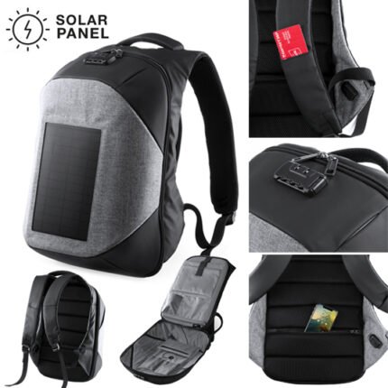 Mochila con indicadores, en resistente poliéster 600D. Indicadores luminosos en la base, con señalización controlada desde las cintas de hombros de la mochila. Bolsillo principal con doble tirador e interior con bolsillo acolchado para laptop de hasta 15 pulgadas. Espalda y cintas acolchadas. Conexión micro USB -cable incluido-. Requiere de un powerbank -no incluido- para el funcionamiento de las luces. Color de origen.